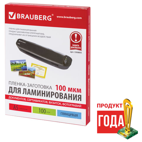 Пленки-заготовки для ламинирования МАЛОГО ФОРМАТА, А5, КОМПЛЕКТ 100 шт., 100 мкм, BRAUBERG | код 530805 | BRAUBERG