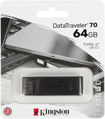 Флеш Диск Kingston 64GB DataTraveler 70 Type-C DT70/64GB USB3.2 черный | код 1393773 | Kingston