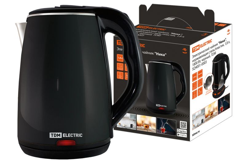 Электрический чайник Ника, нержавеющая сталь / пластик, 1,8 л, 1800 Вт, черный, TDM | код SQ4001-0003 | TDM