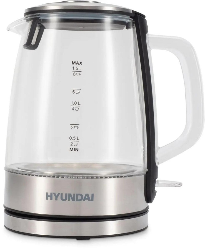 Чайник электрический Hyundai HYK-G2403 1.5л. 2200Вт черный/серебристый корпус: стекло/пластик | код 1911730 | HYUNDAI