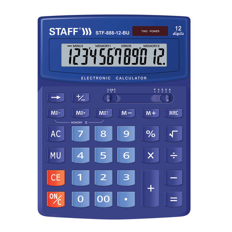 Калькулятор настольный STAFF STF-888-12-BU (200х150 мм) 12 разрядов, двойное питание, СИНИЙ, 250455 | код 250455 | STAFF