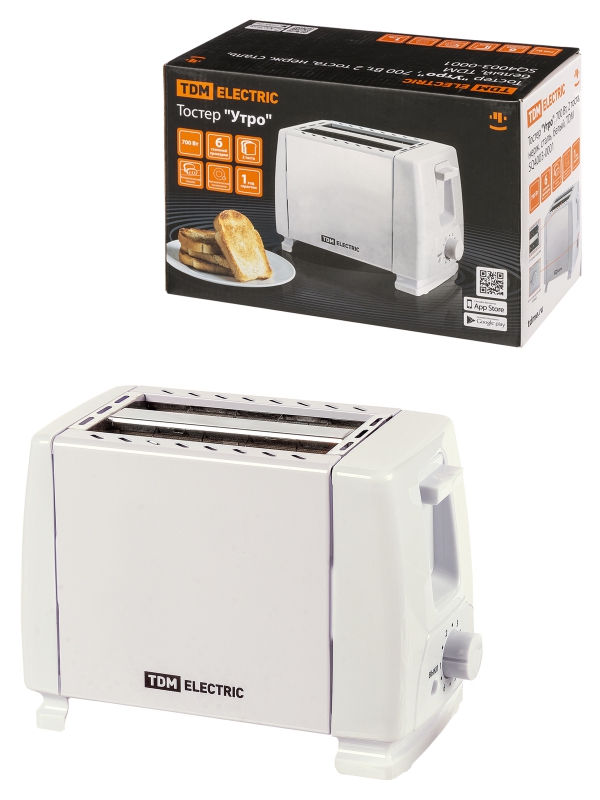 Тостер Утро, 700 Вт, 2 тоста, нерж. сталь, белый, TDM | код SQ4003-0001 | TDM