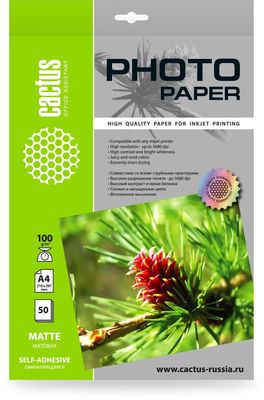 Фотобумага Cactus CS-MSA410050 A4/100г/м2/50л./белый матовое самоклей. для струйной печати | код 1033432 | CACTUS