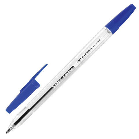 Ручка шариковая STAFF C-51, СИНЯЯ, корпус прозрачный, узел 1 мм, линия письма 0,5 мм, 142812 | код 142812 | STAFF