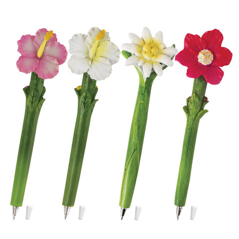 Ручка фигурная ЦВЕТОЧКИ, СИНЯЯ, 4 дизайна ассорти, линия письма 0,5 мм, дисплей, BRAUBERG, 142775 | код 142775 | BRAUBERG