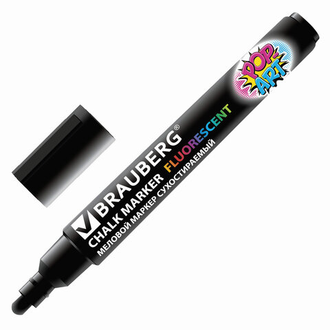 Маркер меловой BRAUBERG POP-ART, сухостираемый, для гладких поверхностей, 5мм, ЧЕРНЫЙ, 151534 | код 151534 | BRAUBERG