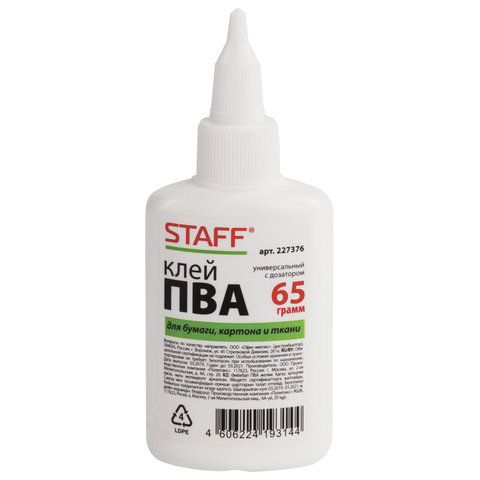 Клей ПВА с дозатором, 65 г, STAFF, 227376 | код 227376 | STAFF