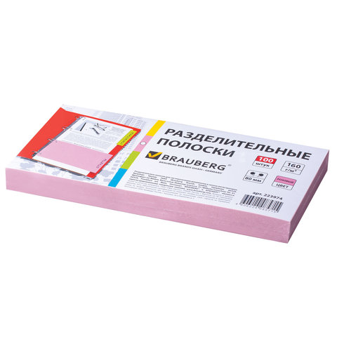 Разделители листов (полосы 230х105 мм) картонные, КОМПЛЕКТ 100 штук, розовые, BRAUBERG, 223974 | код 223974 | BRAUBERG