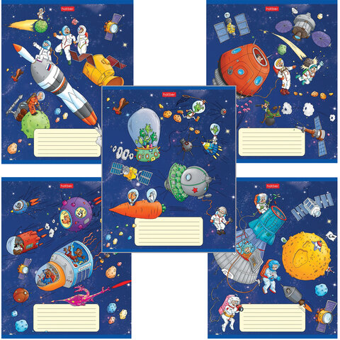 Тетрадь 18 л. HATBER клетка, обложка картон, Космическое приключение (5 видов в спайке),18Т5В1 | код 106263 | HATBER