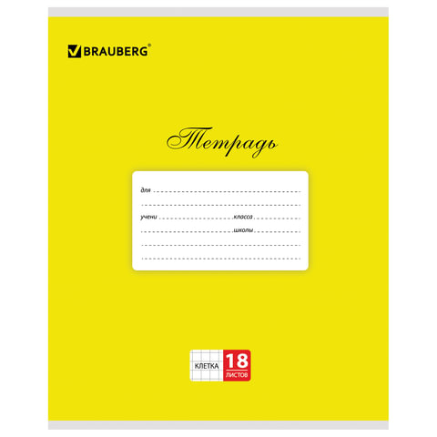 Тетрадь 18 л. BRAUBERG КЛАССИКА, клетка, обложка картон, ЖЕЛТАЯ | код 104728 | BRAUBERG