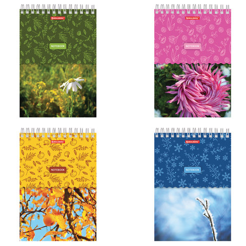 Блокнот А5 (146х206 мм), 60 л., гребень, картон, жесткая подложка, клетка, BRAUBERG, Четыре сезона, 129811 | код 129811 | BRAUBERG