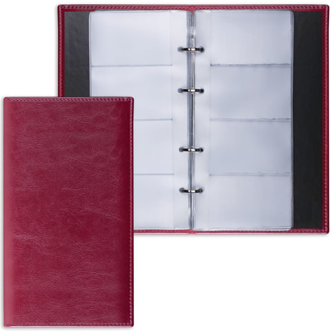 Визитница на кольцах BRAUBERG Imperial, на 240 визиток, под гладкую кожу, бордовая, 231665 | код 231665 | BRAUBERG