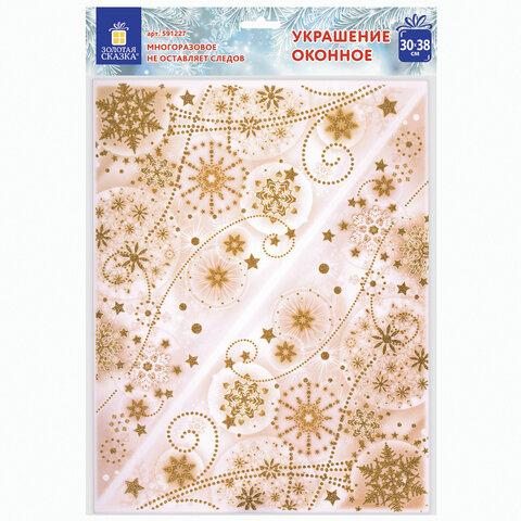 Украшение для окон и стекла ЗОЛОТАЯ СКАЗКА Узоры из золотых снежинок 1 , 30х38 см, ПВХ | код 591227 | ЗОЛОТАЯ СКАЗКА