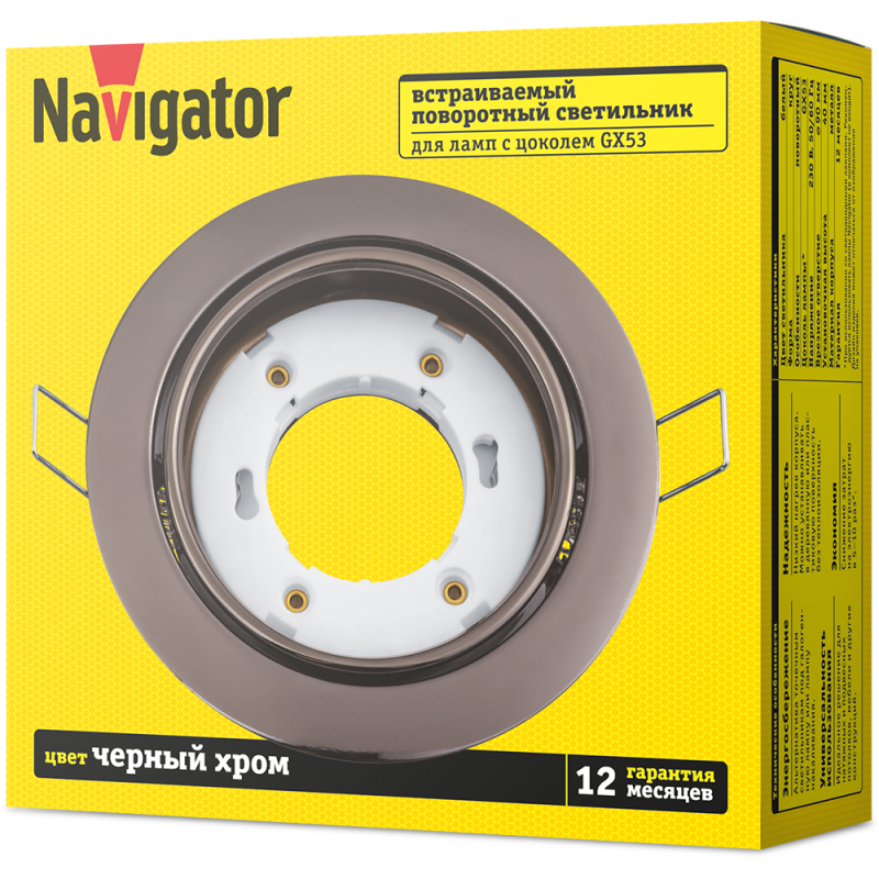 Светильник 93 034 NGX-R5-005-GX53 поворотный черн. хром. Navigator 93034