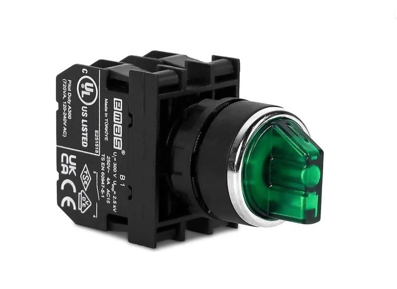 Переключатель 0-1 с фиксацией зел. (1НО+1НЗ) EMAS B102SL20Y