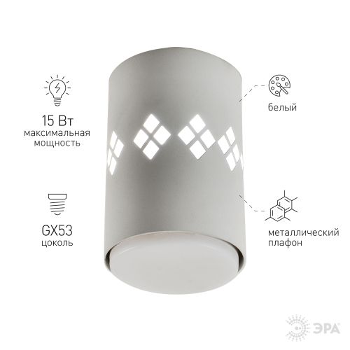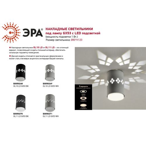 Светильник OL10 LD GX53 WH настен./потолочн. спот подсветка 1Вт бел. Эра Б0050269