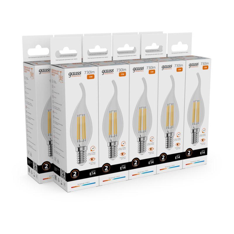 Лампа светодиодная филаментная Filament Elementary 12Вт свеча на ветру 2700К Е14 730лм GAUSS 42112