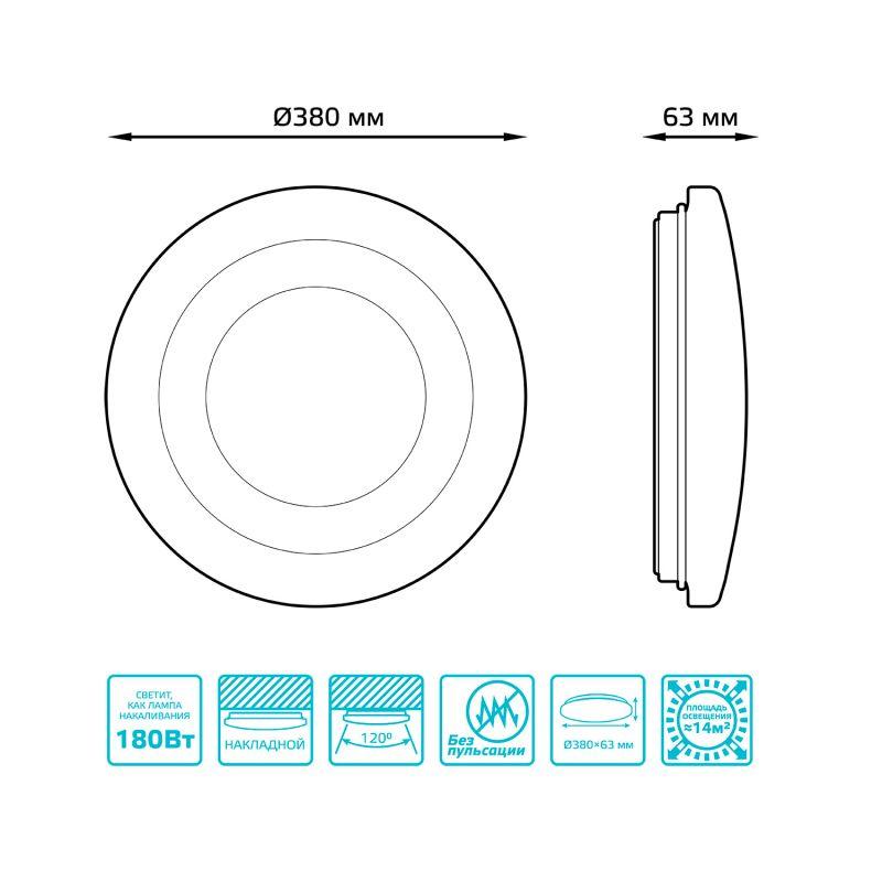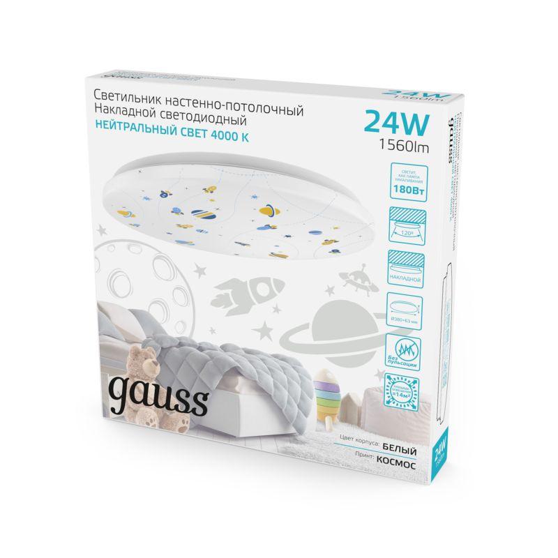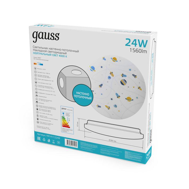Светильник светодиодный 380х63 24Вт 4000К IP20 1560Лм круг (космос) настенно-потолочный накладной GAUSS 941411224R