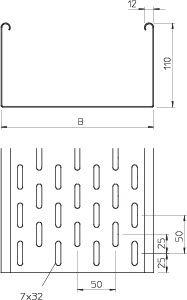 Лоток листовой перфорированный 300х110 L3000 сталь 1.5мм SKS 130 FS OBO 6061303