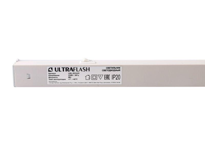 Светильник светодиодный LWL-2016-03 8Вт 6000К 220В с выкл. на корпусе с сетевым проводом пластик. бел. Ultraflash 13946