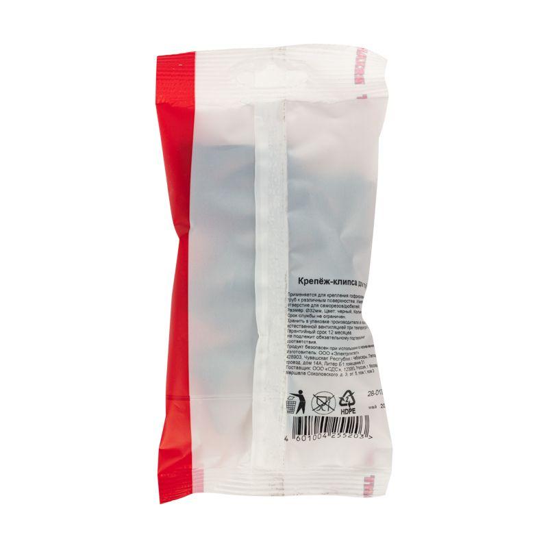Крепеж-клипса для трубы 32 мм черная (10 шт./уп.), REXANT | код 28-0132-5 | REXANT