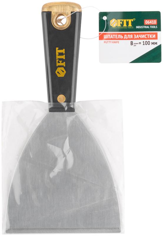 Шпатель для удаления ржавчины Профи, толщ. лезвия 1 мм, пластик.ручка с метал.бойком 4'' (100 мм) | код 6410 | FIT