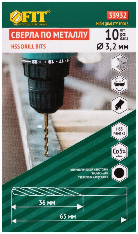 Сверла по металлу HSS с добавкой кобальта 5% Профи 3.2 мм (10 шт) | код 33932 | FIT