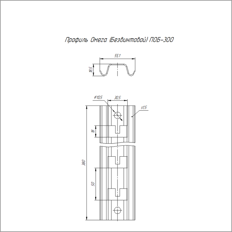 Профиль Омега (Безвинтовой) ПОБ-300 | код PR16.1085 | Промрукав