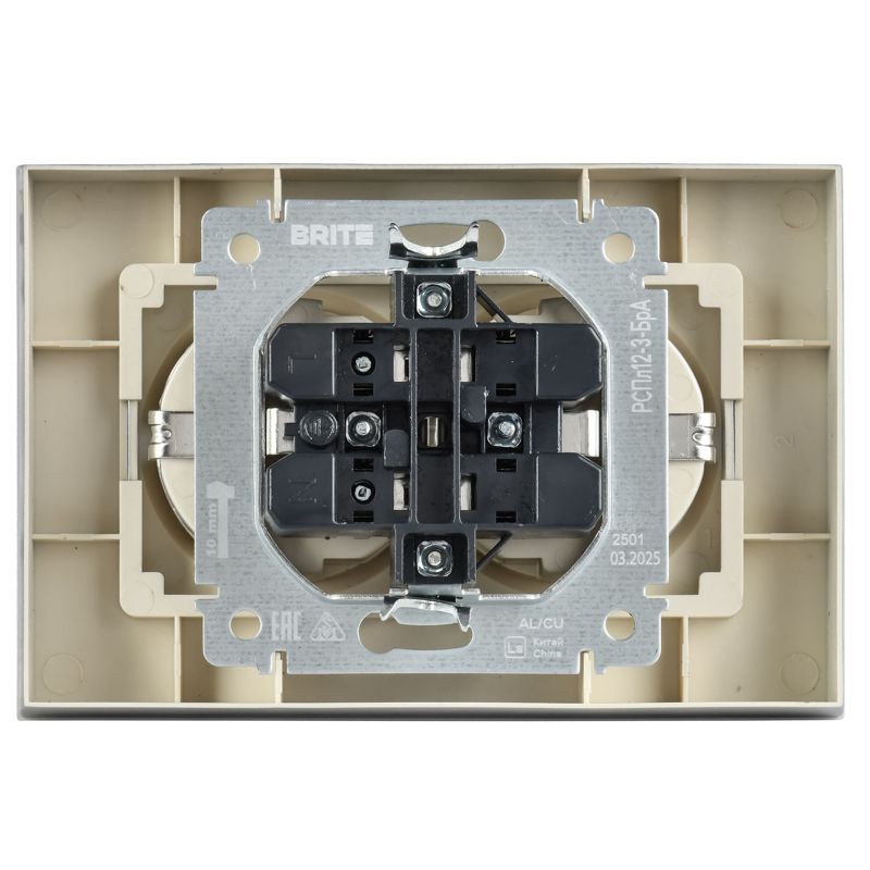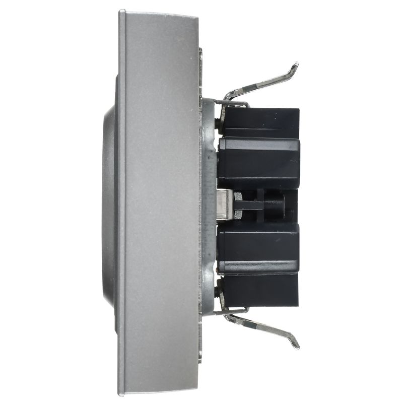 BRITE Розетка 2-местная с заземлением без защитных шторок плоская 16А в сборе РСПл12-3-БрА алюминий IEK | код BR-R27-16-K47-F | IEK
