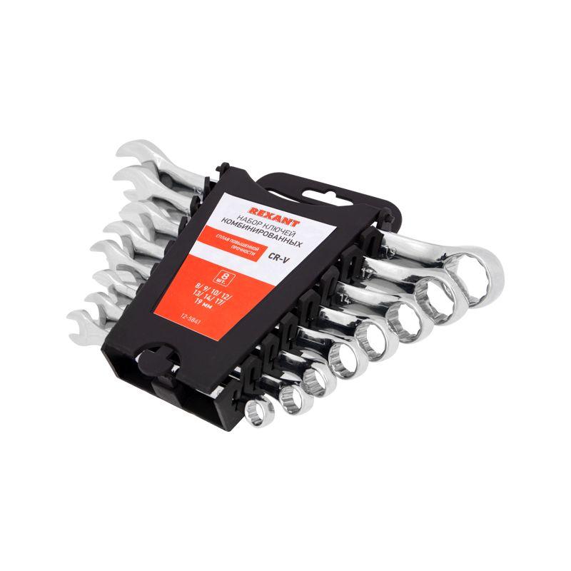 Набор ключей комбинированных (8-19 мм), (упак - 8 шт.), CrV | код 12-5841 | REXANT