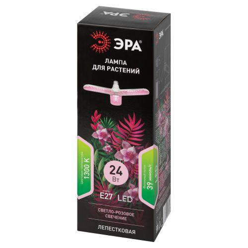 Фитолампа для растений светодиодная FITO-24W-RB-E27-FOLD 3-х лепестковая красно-синего спектра 24 Вт Е27 | код Б0061428 | ЭРА