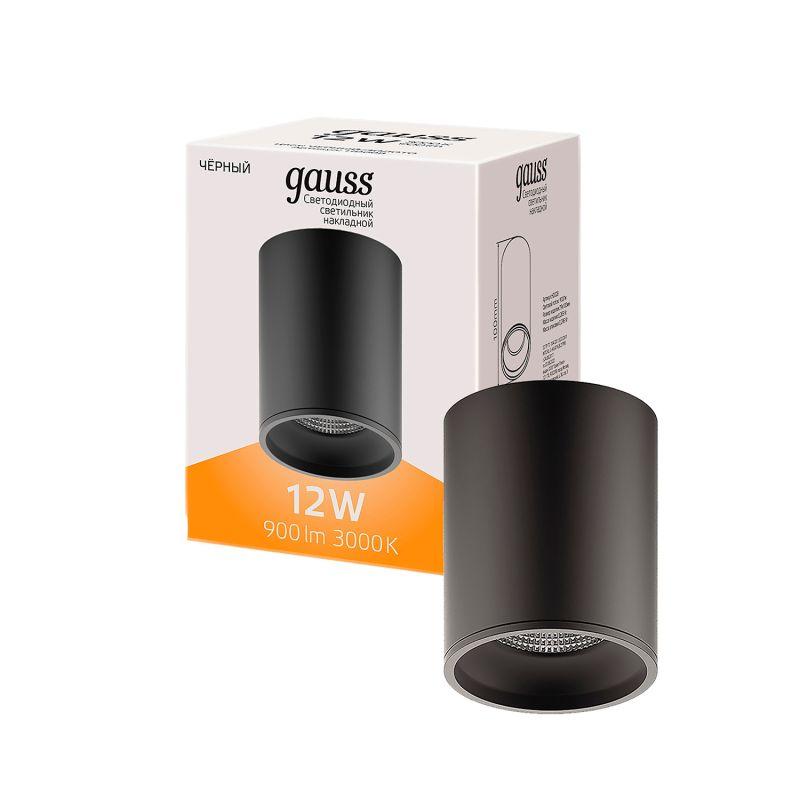 Светильник светодиодный ДБО 12 Вт 900 лм 3000К AC 220В Черный IP20 D79х100мм Алюминий Overhead Gauss | код HD028 | Gauss