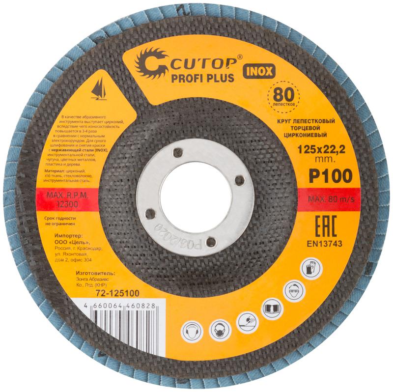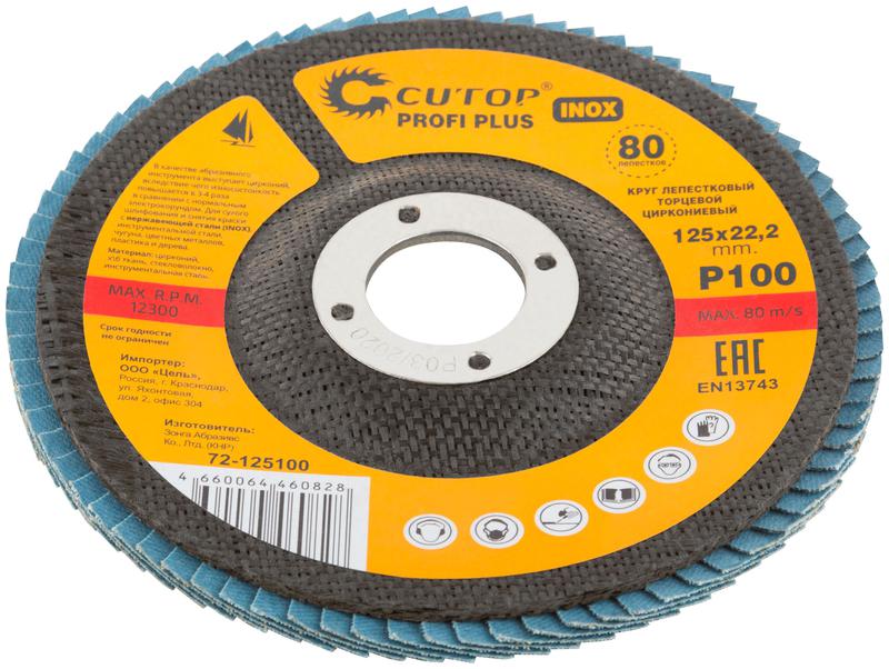 Круг лепестковый торцевой циркониевый Cutop Profi Plus (80 лепестков) 125x22.2 мм, Р100 | код 72-125100 | FIT