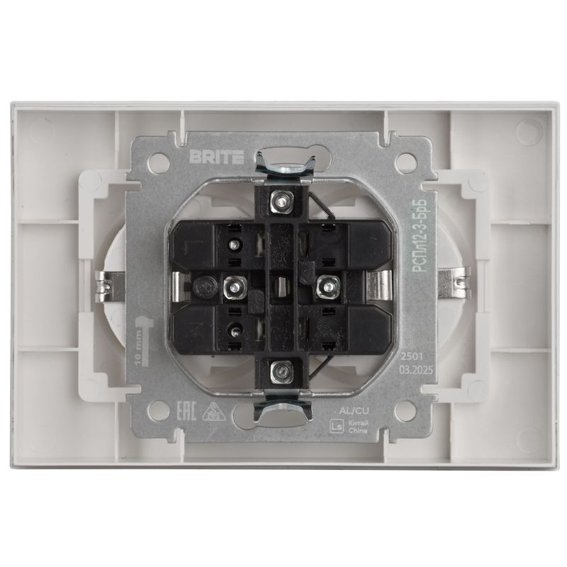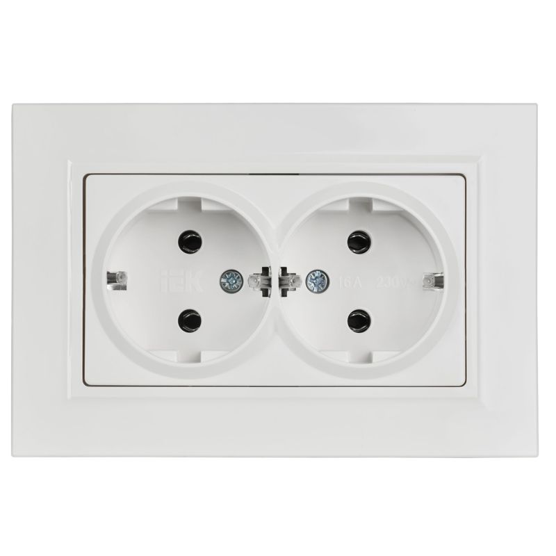 BRITE Розетка 2-местная с заземлением без защитных шторок плоская 16А в сборе РСПл12-3-БрБ белый IEK | код BR-R27-16-K01-F | IEK