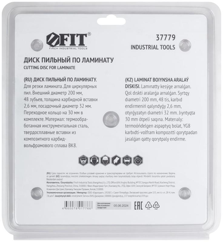 Диск пильный для циркулярных пил по ламинату 200x32/30x48T | код 37779 | FIT
