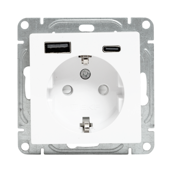 Механизм розетки с USB-A+С - 2шт, 16А, с заземлением, со шторками, белый Эпика EKF | код UP1-SOW-111-USBA+USBC | EKF