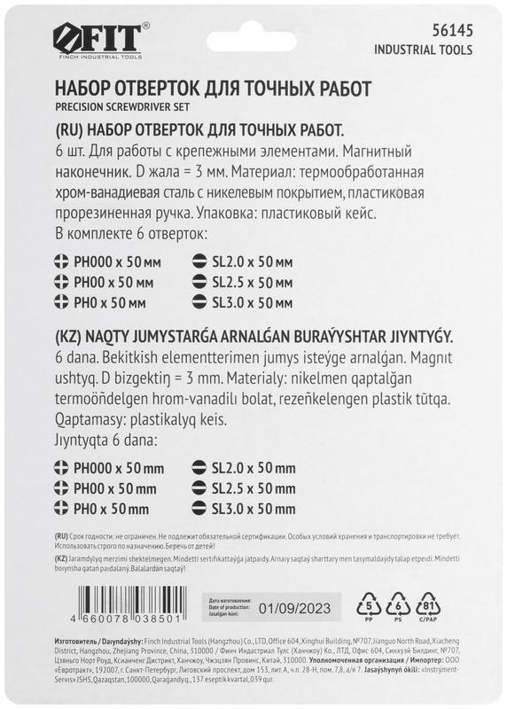 Отвертки для точных работ CrV, 6 шт., PH/SL, пластиковый кейс | код 56145 | FIT