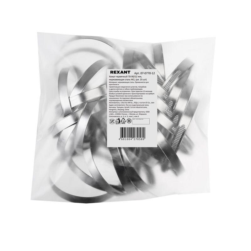 Хомут червячный 70-90/12-0.8 мм. нержавеющая сталь W2 | код 07-0770-12 | REXANT
