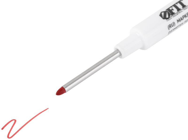 Маркер строительный перманентный, тонкий, удлиненное перо, красный | код 4344 | FIT