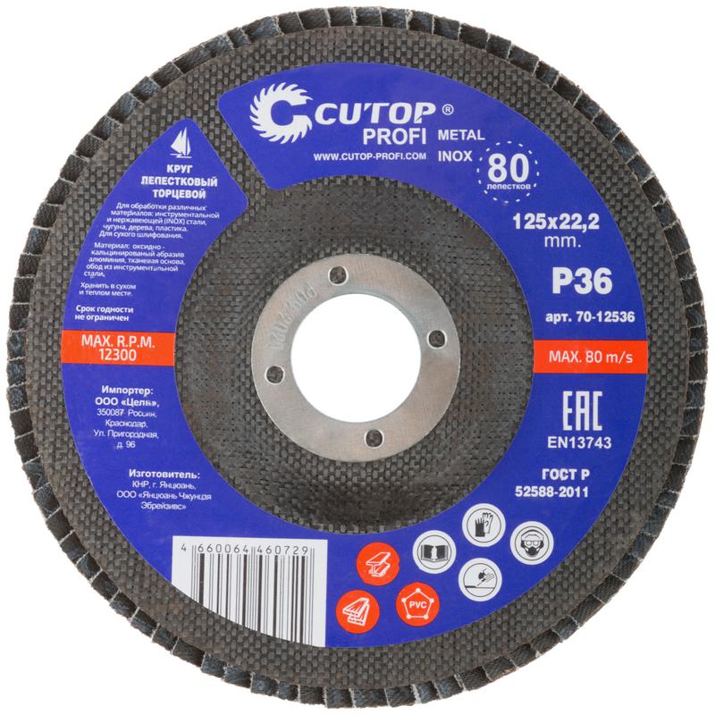 Круг лепестковый торцевой Cutop Profi (80 лепестков) 125x22.2 мм, Р36 | код 70-12536 | FIT