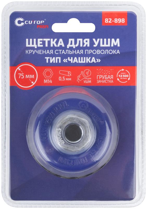 Щетка для УШМ, М14, Чашка, крученая витая проволока 0,5 мм, 75 мм, блистер, Profi | код 82-898 | FIT