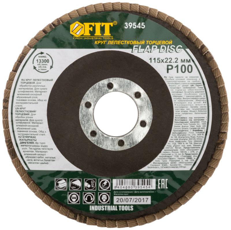 Круг лепестковый торцевой, 115 мм Р 100 | код 39545 | FIT