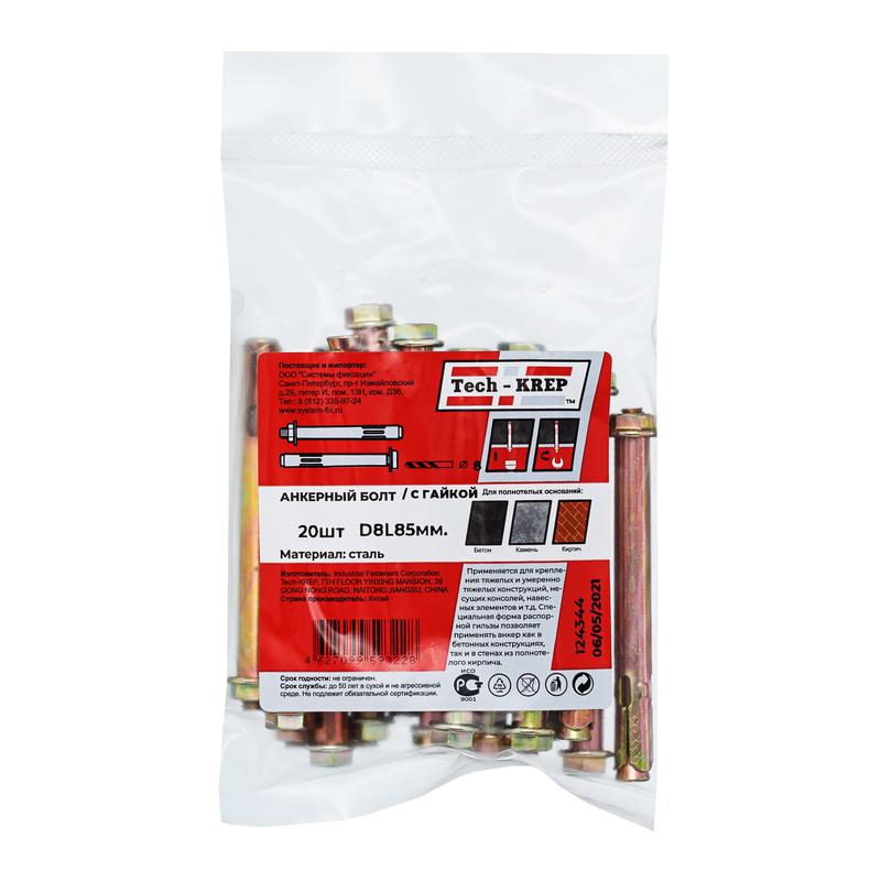 Болт анкерный 8х85 с гайкой (20шт) | код 124344 | Tech-KREP