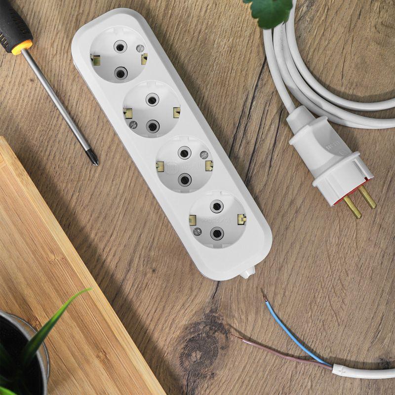 Колодка 4 гнезда c заземлением | код 11-8707 | REXANT