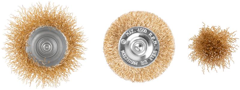 Набор щеток для дрели, 3 шт., Чашки 25, 50 мм, Плоская 50 мм, латунированная витая проволока, блистер, Profi | код 82-926 | FIT