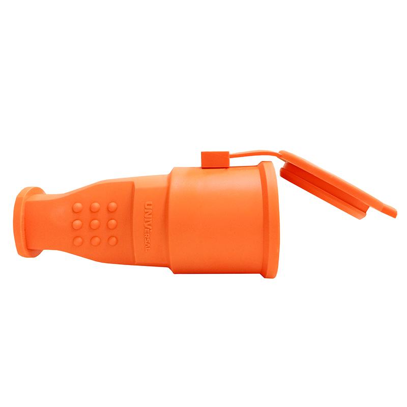 Разъем штепсельный UNIVersal с/з каучук с заглушкой 16А 250В IP44 оранжевый (еврослот) | код 3038 | Universal