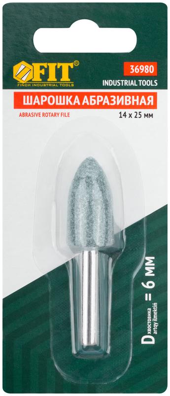 Шарошка абразивная (по камню, мрамору, кафелю), хвостовик 6 мм, цилиндр с остр.наконечник. 14x25 мм | код 36980 | FIT