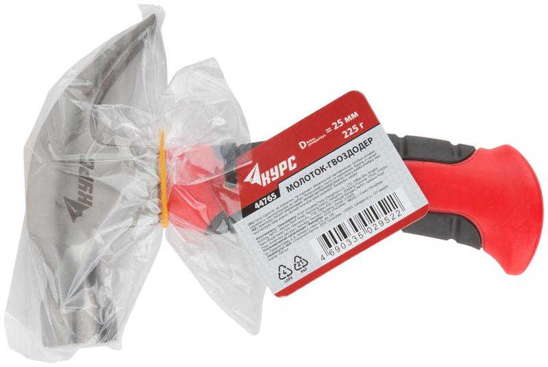 Молоток-гвоздодер, укороченный, фиброглассовая обрезиненная ручка 25 мм, 225 гр | код 44765 | FIT