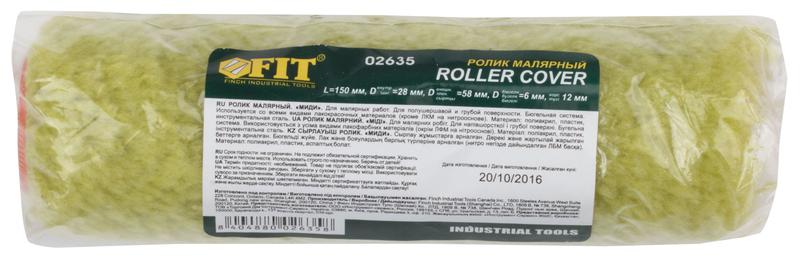 Ролик сменный полиакриловый зеленый ''миди'', диаметр 28/52 мм, ворс 12 мм, 150 мм | код 2635 | FIT