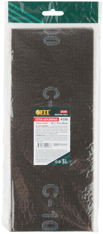 Сетки шлифовальные 115х280 мм, 3 шт Р 100 | код 38304 | FIT